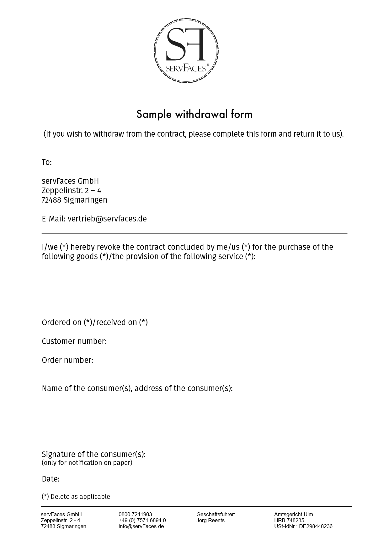 of your decision to withdraw from this contract by an unequivocal statement (e.g. a letter sent by post or e-mail). You can use the attached sample withdrawal form (under point 3.), but this is not mandatory. |